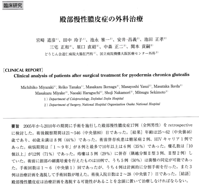 2013年投稿論文で臀部慢性膿皮症の第二弾です。前回は2004年に投稿しています(執筆論文解説⑦)。今回は別施設で5年間に経験した17例です。