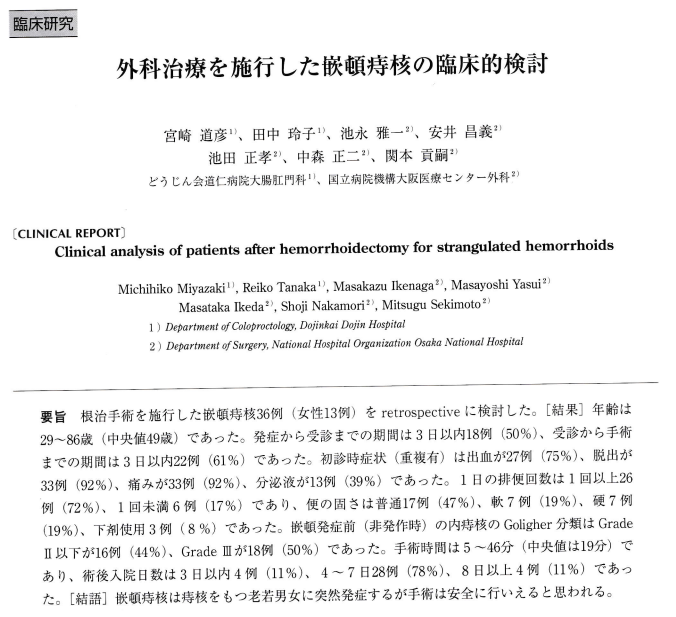 執筆論文解説39 いつもの痔核が飛び出たままで戻らない嵌頓痔核(かんとんじかく)