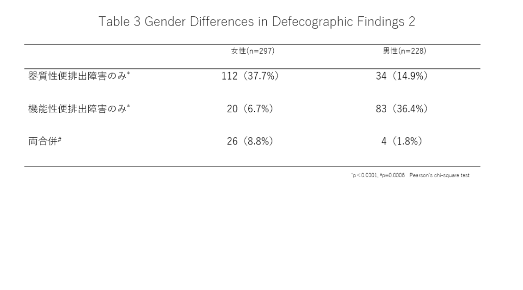表3 器質性と機能性に分けて検討。