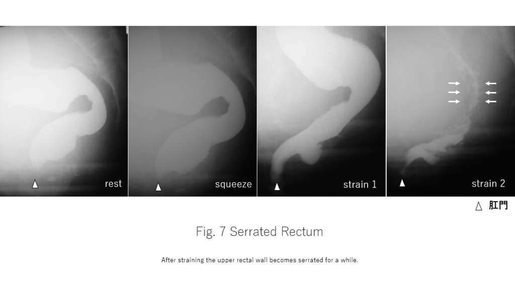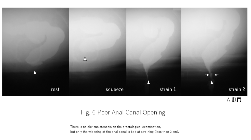 まずは本研究で有所見とした所見の一部の排便造影検査を示します。