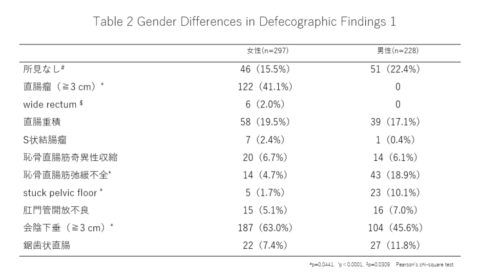 結論:便排出障害の診断は女性は排便造影だけで診断できる可能性がありますが男性は内圧検査などの追加検査が必要です