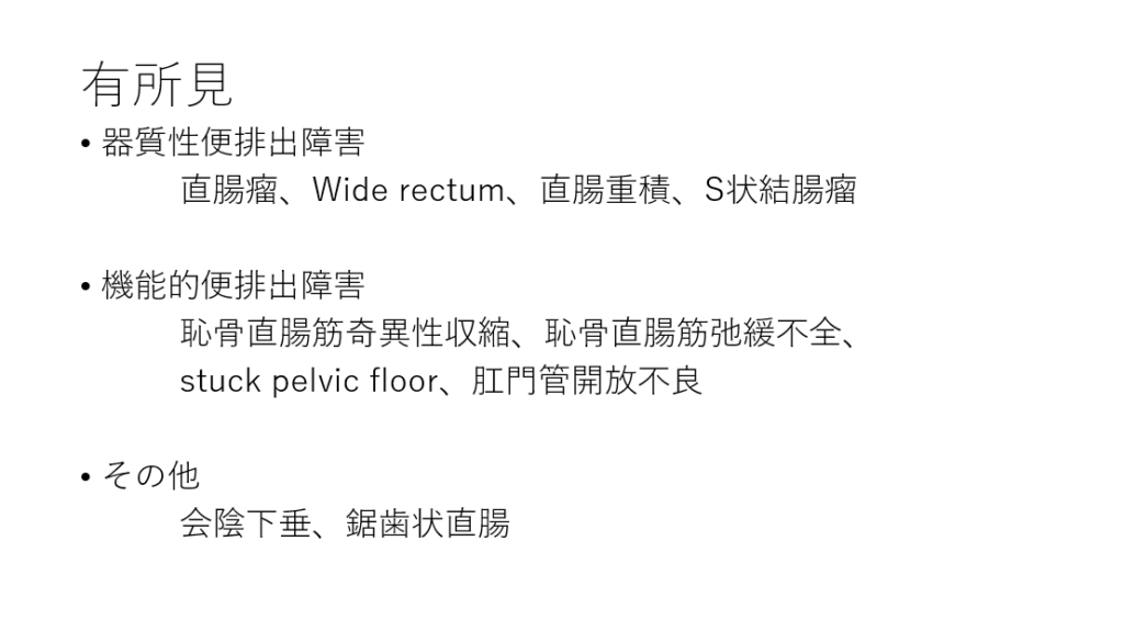 便排出障害には器質的なものと機能的なものがあります。今回検討の有所見です。