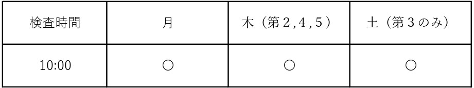 ●当日検査1時間前の9時に外来受付にお越し下さい。