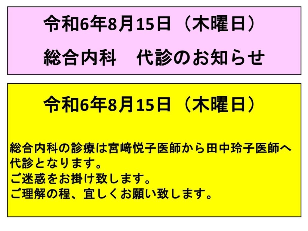 新着情報 休診・代診令和6年8月13日(火曜日)内科 田中玲子医師 休診/令和6年8月15日(木曜日) 総合内科 代診のお知らせ 令和6年8月13日(火曜日)内科 田中玲子医師 休診/令和6年8月15日(木曜日) 総合内科 代診のお知らせ 2024.06.27 休診・代診 «新しい記事 一覧に戻る 以前の記事»