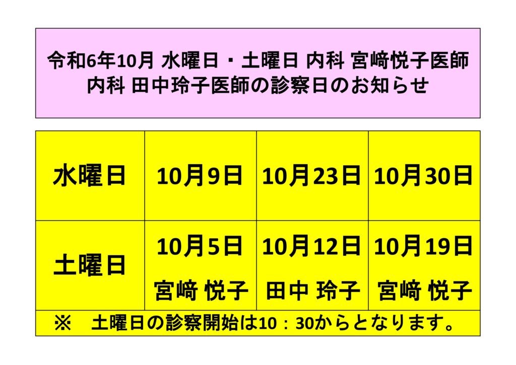新着情報 診察担当日令和6年10月 水曜日・土曜日 内科宮﨑悦子医師 内科田中玲子医師 診察日のお知らせ 令和6年10月 水曜日・土曜日 内科宮﨑悦子医師 内科田中玲子医師 診察日のお知らせ 2024.09.26 診察担当日 «新しい記事 一覧に戻る 以前の記事»