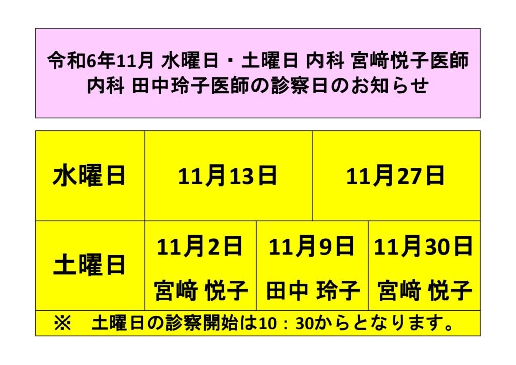 新着情報 診察担当日令和6年11月 水曜日・土曜日 内科宮﨑悦子医師 内科田中玲子医師 診察日のお知らせ 令和6年11月 水曜日・土曜日 内科宮﨑悦子医師 内科田中玲子医師 診察日のお知らせ 2024.10.25 診察担当日 «新しい記事 一覧に戻る 以前の記事»