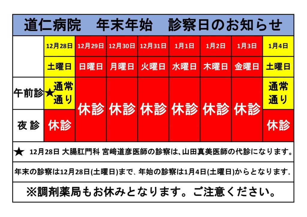 令和6年年末(令和7年年始) 診察日のお知らせ