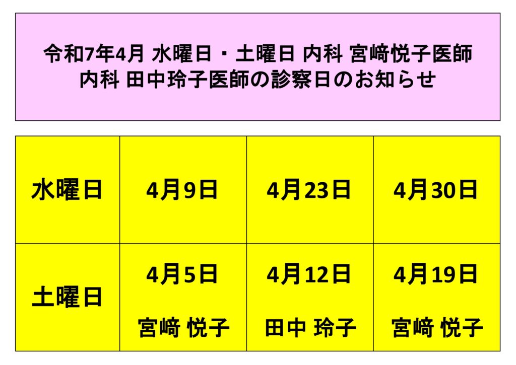 新着情報 診察担当日令和7年4月 水曜日・土曜日 内科宮﨑悦子医師 内科田中玲子医師 診察日のお知らせ 令和7年4月 水曜日・土曜日 内科宮﨑悦子医師 内科田中玲子医師 診察日のお知らせ 2025.03.27 診察担当日 «新しい記事 一覧に戻る 以前の記事»