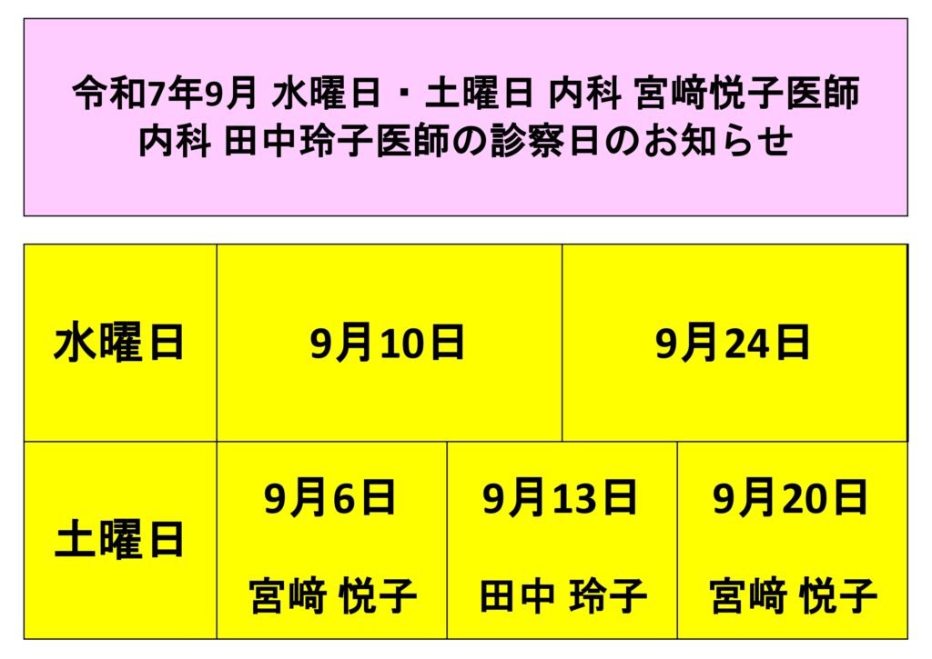 新着情報 診察担当日令和7年9月 水曜日・土曜日 内科宮﨑悦子医師 内科田中玲子医師 診察日のお知らせ 令和7年9月 水曜日・土曜日 内科宮﨑悦子医師 内科田中玲子医師 診察日のお知らせ 2025.08.25 診察担当日 «新しい記事 一覧に戻る 以前の記事»